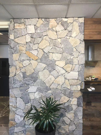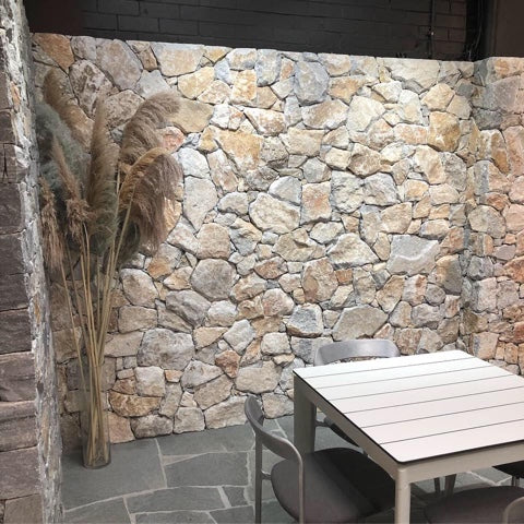 Manufactured from high-quality natural stone, Vari Stone features larger individual pieces that range in diameter, allowing for a more expressive and authentic stone aesthetic. The variation in shape, size, and thickness creates depth and shadow, making it particularly suited to expansive feature walls where scale and texture are essential.